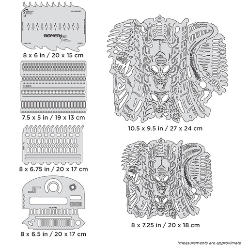 ARTOOL FH BMFX 1 Biomech FX Skull Buster (6 Stk.) Freihand Airbrush Schablonen von Mike Lavallee (200496)